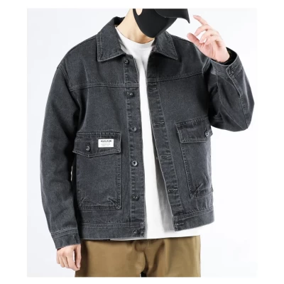 Handsome Versatile Male Cargo Washed Big Pocket Woven Shirt Jackets