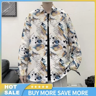 KentyShark Men's Spring New Cothes Printed Loose Shirts Long Sleeve Shirt Fashionable Jacket