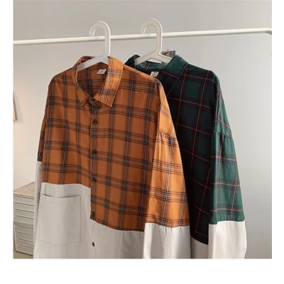 Men's Casual Shirt 2022 Spring Long-sleeved Plaid Stitching Tops Korean Casual Jacket