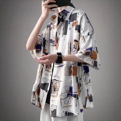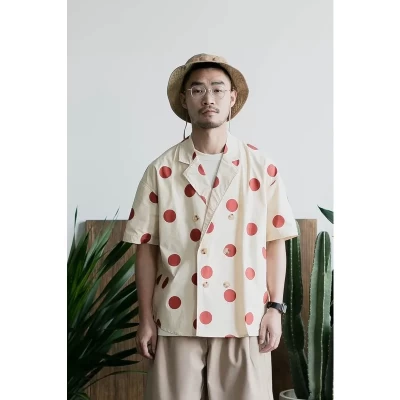 Floral Shirt Polka Dot Printed Short-Sleeved Beach Men Summer Loose Suit Collar Jacket