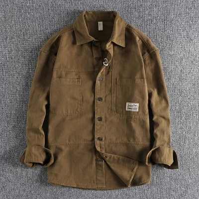 Daily Versatile Loose Tops Fashion American Street Cargo Canvas Cotton Shirts Jacket