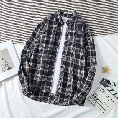 Men Plaid Shirt All-Match Casual Jacket Korean Long Sleeve