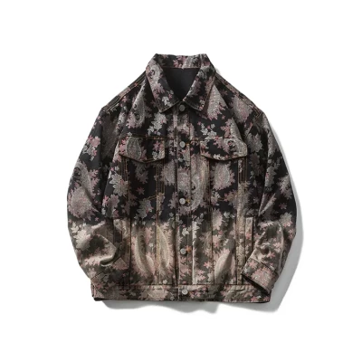 Hip Pop Paisley Printed Denim Jackets Men 2022 Autumn Korean