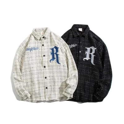 AA33-Fashin Patchwork Shirt Men Flannel Jacket