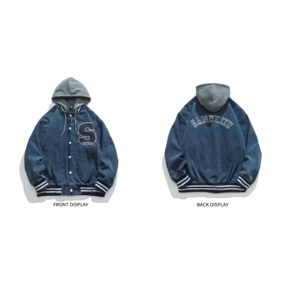 Spring Letter S Embroid Hooded Removable High Streetwear