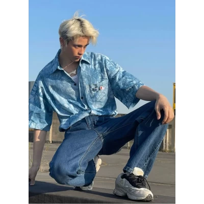 2022 large size ins printed shirt men's loose Chinese style casual men's trend short-sleeved
