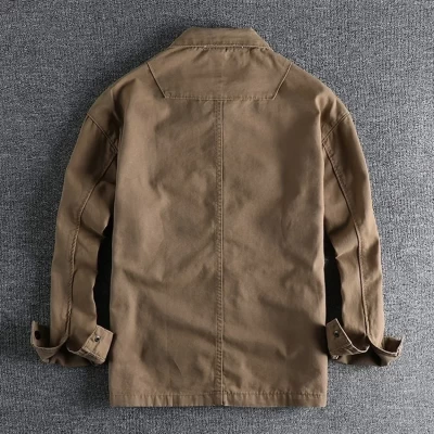 Handsome Versatile Male Cargo Washed Big Pocket Woven Shirt Jackets