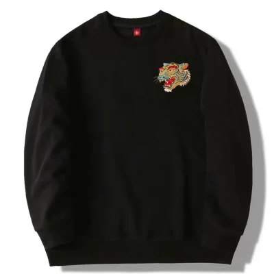 Men Streetwear Chinese Style Tiger Embroidery Fleece Hoodie Pullover Cotton Casual