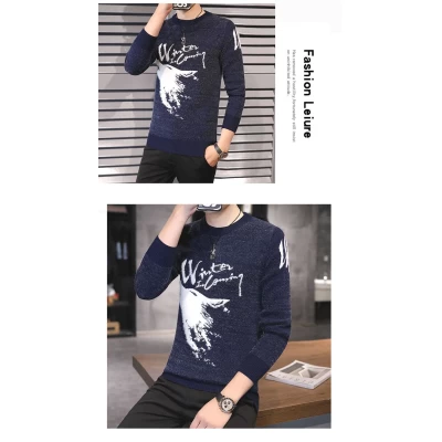 Men's Sweater Autumn and Winter Korean Trend Slim Round Neck Pullover