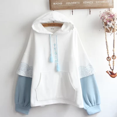 Hong Kong style loose casual solid color hooded sweatshirt long-sleeved bottoming shirt