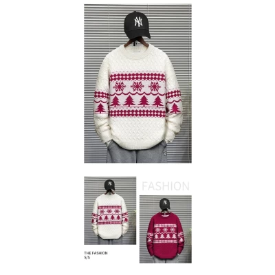 round Neck Christmas Sweater Men's Autumn and Winter New Year Red Idle Style Cotton Knitwear